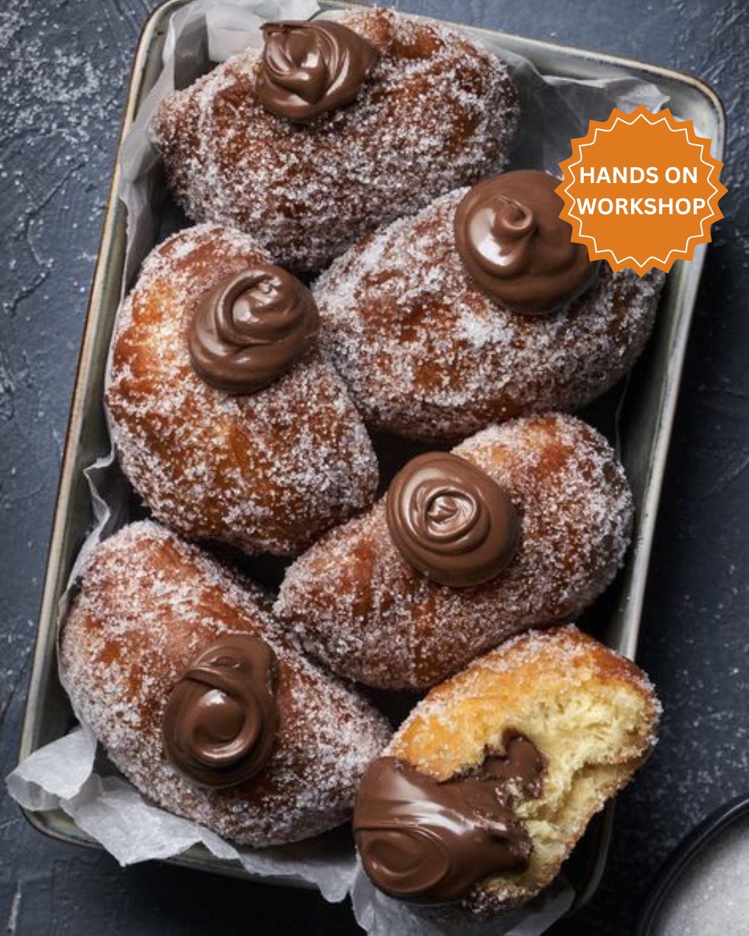 Join our Bomboloni Masterclass and learn the art of making these soft, pillowy Italian doughnuts in both sweet and savory variations! This hands-on session will take you through the secrets of making perfect Bomboloni—from kneading the dough to frying them to golden perfection and filling them with irresistible flavors.